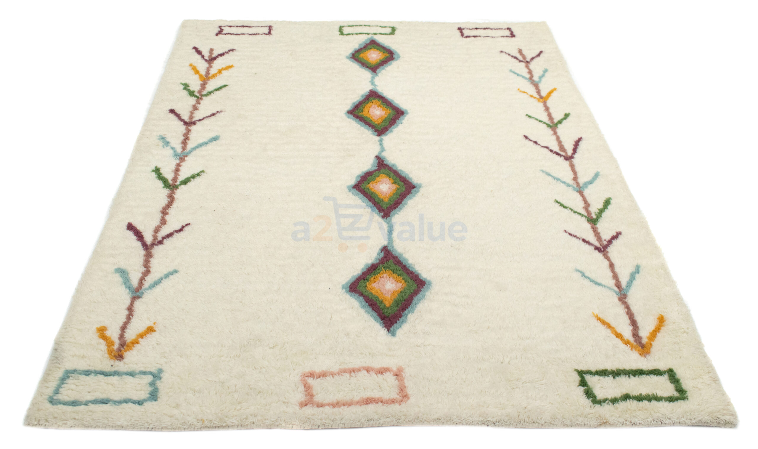 Home / Shop / Hand Tufted / Handwoven Berber-Style Geometric Area Rug – Cream Base with Multicolor Tribal Accents