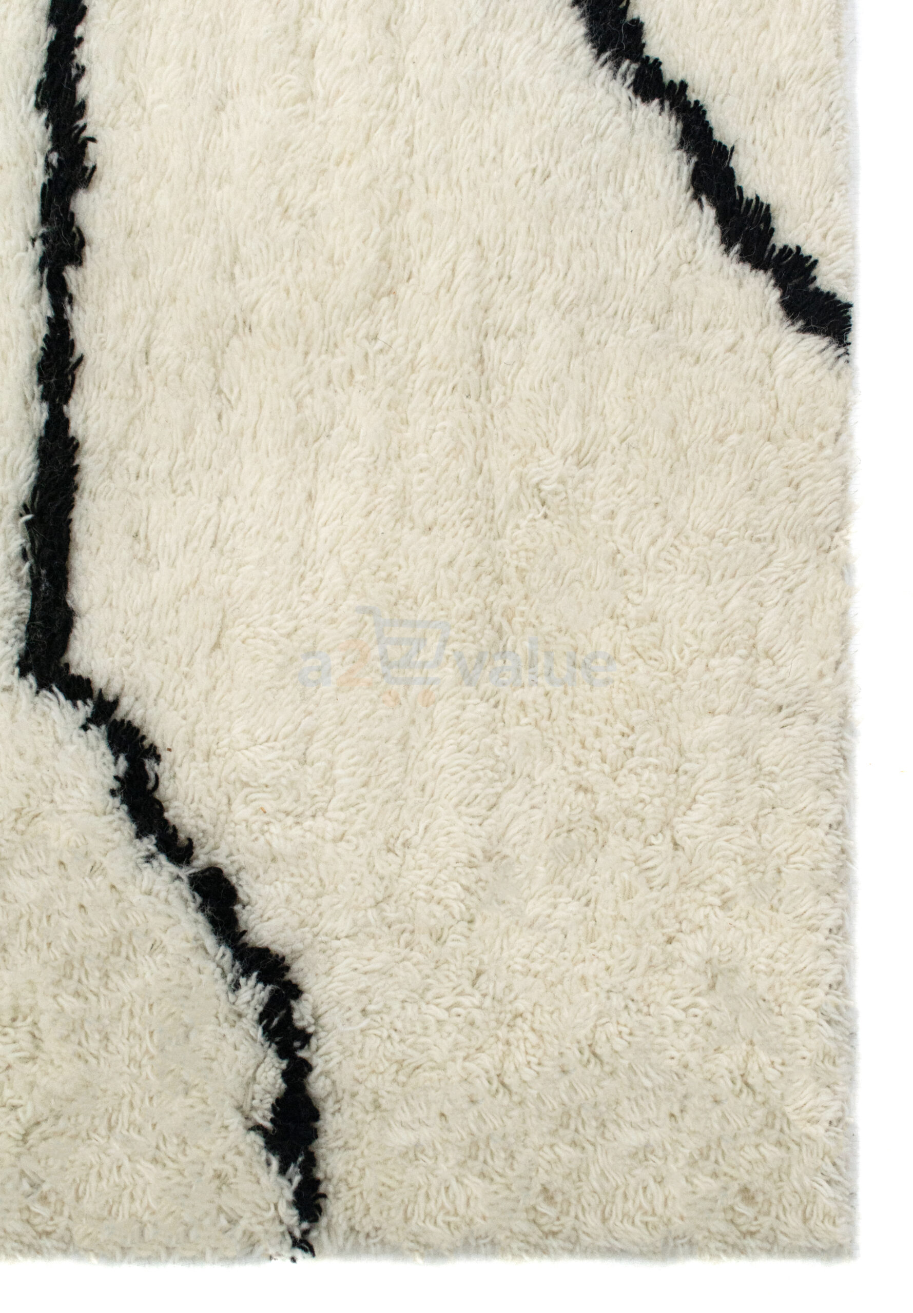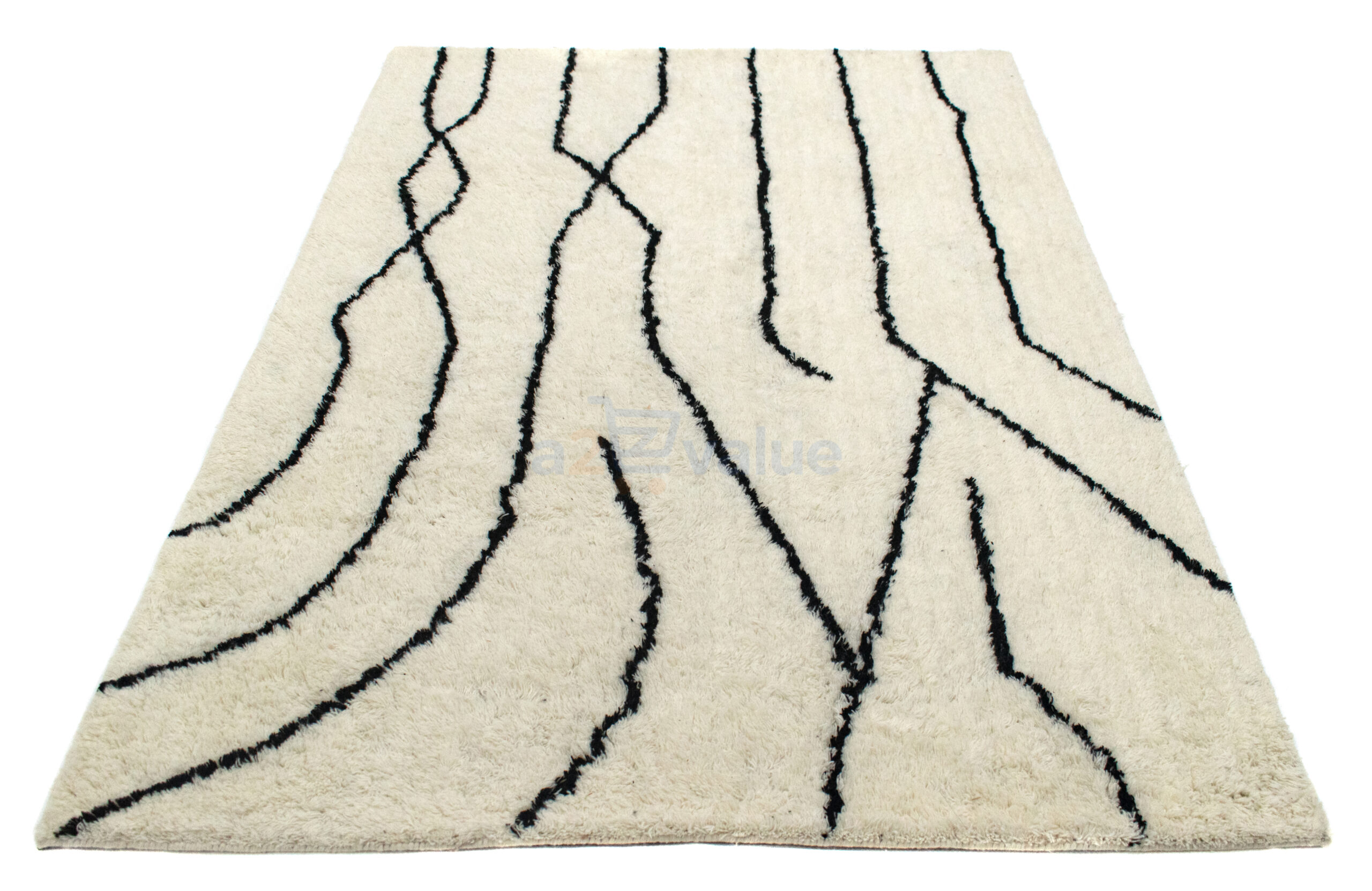 Add a touch of modern elegance to your space with this beautifully designed abstract area rug. Featuring a plush cream background accented by sleek black linear patterns, this rug blends simplicity and style effortlessly. Its soft, high-pile texture provides a cozy feel underfoot — perfect for contemporary homes, Scandinavian interiors, or minimalist decor themes.
